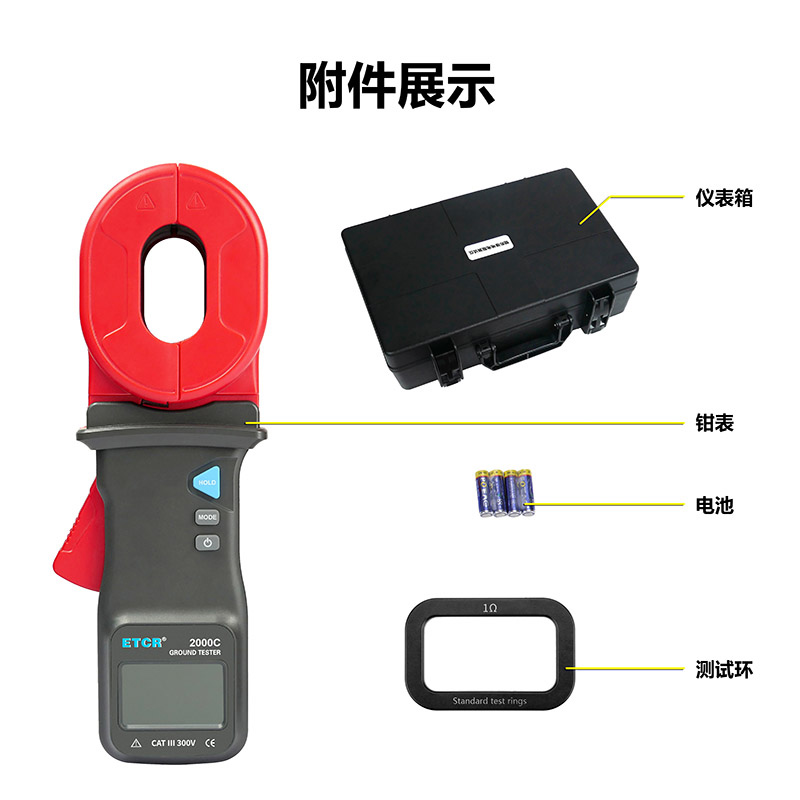 | ETCR2000A鉗形接地電阻儀 | 55mm×32mm | 0.010Ω~500Ω | -- | 有 | 99組 | |