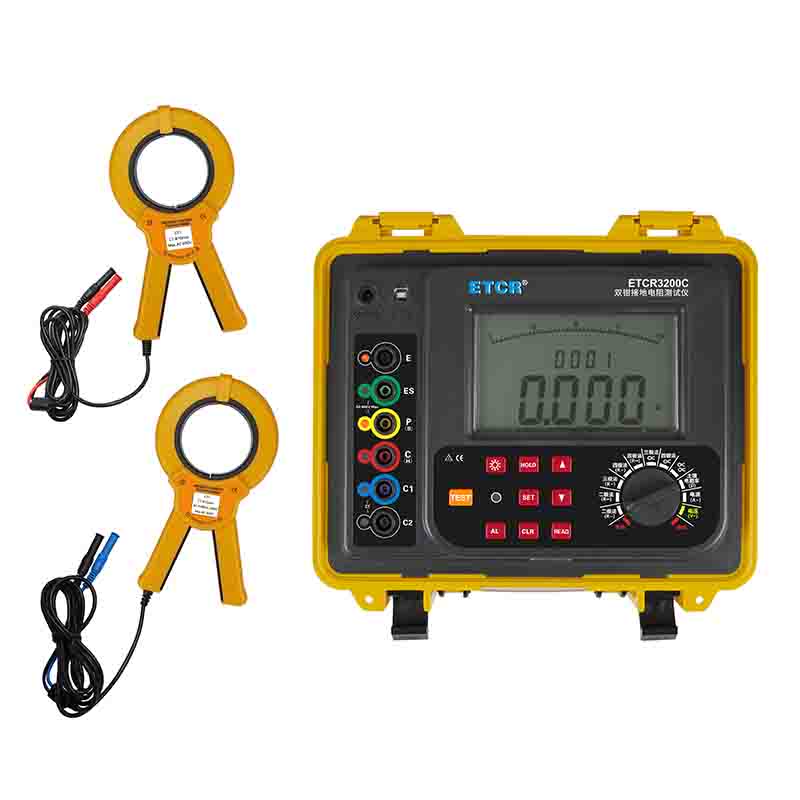 ETCR3200C雙鉗接地電阻測試儀又稱多功能接地電阻測試儀、精密接地電阻測試儀,用于現場測量接地電阻、土壤電阻率、接地電壓、接地線漏電流、交流電流、直流電阻。儀表采用數字處理技術,精密4線法、3線法和簡易2線法、選擇法、雙鉗法測量接地電阻,可靈活準確測量單點和網狀接地等各種復雜接地情況的任意接地電阻值,并聯接地測量時無需斷開任何并聯接地電極,最大程度地提高測量的方便性。導入FFT(快速傅立葉變換)技術、AFC(自動頻率控制)技術,具有獨特的抗干擾能力和環境適應能力,重復測試一致性強,確保長年測量的高精度、高穩定性和高可靠性。廣泛應用于電力、電信、氣象、建筑、防雷及工業電氣設備等行業。