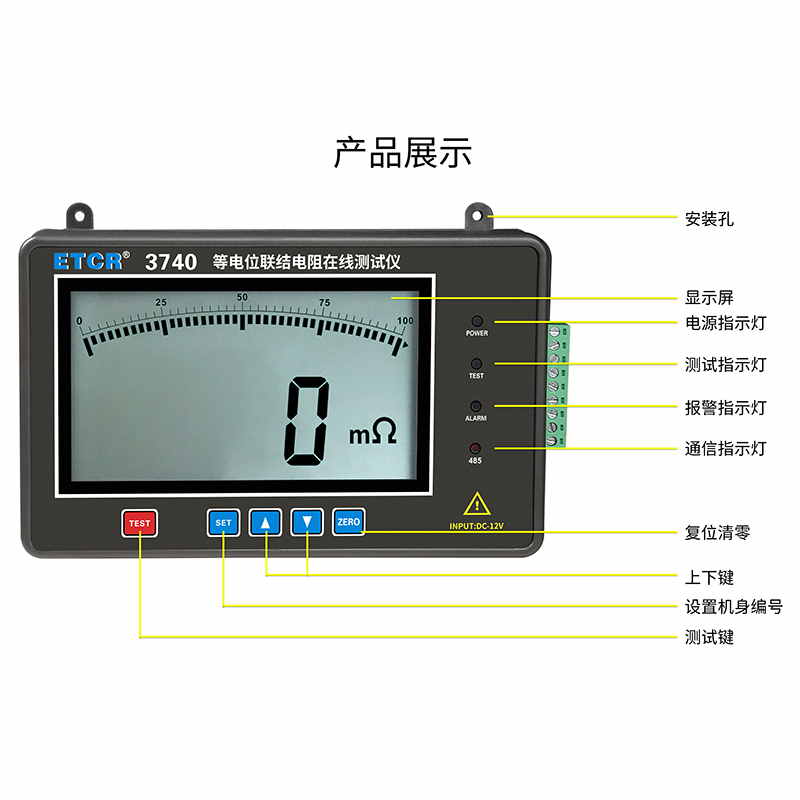ETCR3740等電位聯(lián)結(jié)電阻在線監(jiān)測儀采用微處理機技術(shù),四線法測試,安全精密可靠,測試儀提供485通訊或4G通訊方式,用戶可根據(jù)MODBUS通訊協(xié)議進行二次開發(fā)、組建網(wǎng)絡(luò)、實現(xiàn)遠程多點在線監(jiān)測。測試儀采用大屏LCD顯示,可設(shè)置測試參數(shù),在現(xiàn)場查看當前直流電阻值。儀表具有聲光報警功能,可設(shè)置報警臨界值。測試儀安裝簡單,結(jié)構(gòu)緊湊,安全耐用。