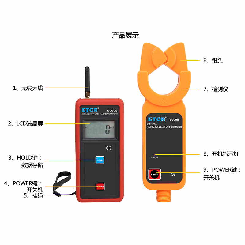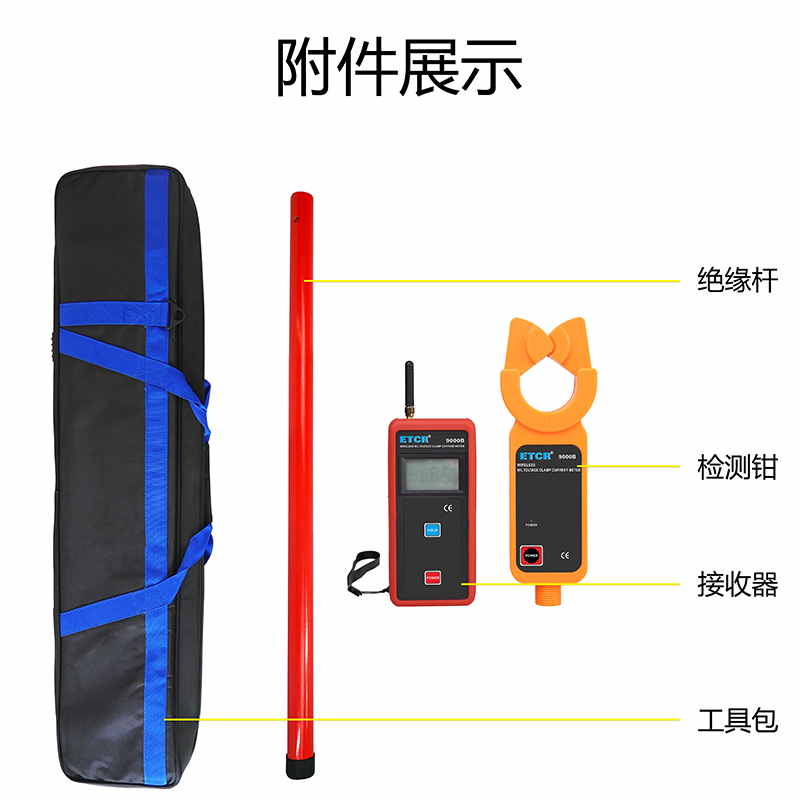 ETCR9000B無線高低壓鉗形電流表又稱架空線路負載測試儀,高壓負載測試儀、高空電流測試儀、高壓電流遙測儀,用于測量架空線路高低壓電流。儀表由專用鉗形電流表配高壓絕緣桿組成。若不使用絕緣桿,還可以當作高精度低壓鉗形電流表使用。廣泛應用于變電站﹑發電廠﹑工礦企業以及檢測站﹑電工維修部門進行電流檢測和野外電工作業等。
