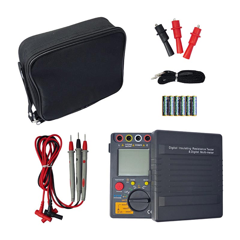| ETCR3430B高壓絕緣電阻萬(wàn)用表 | 500V/1000V/2500V | 0.5MΩ~50GΩ | 1mA MAX | DC:0V~1000V | AC:0V~700V | 0nF~40mF |
