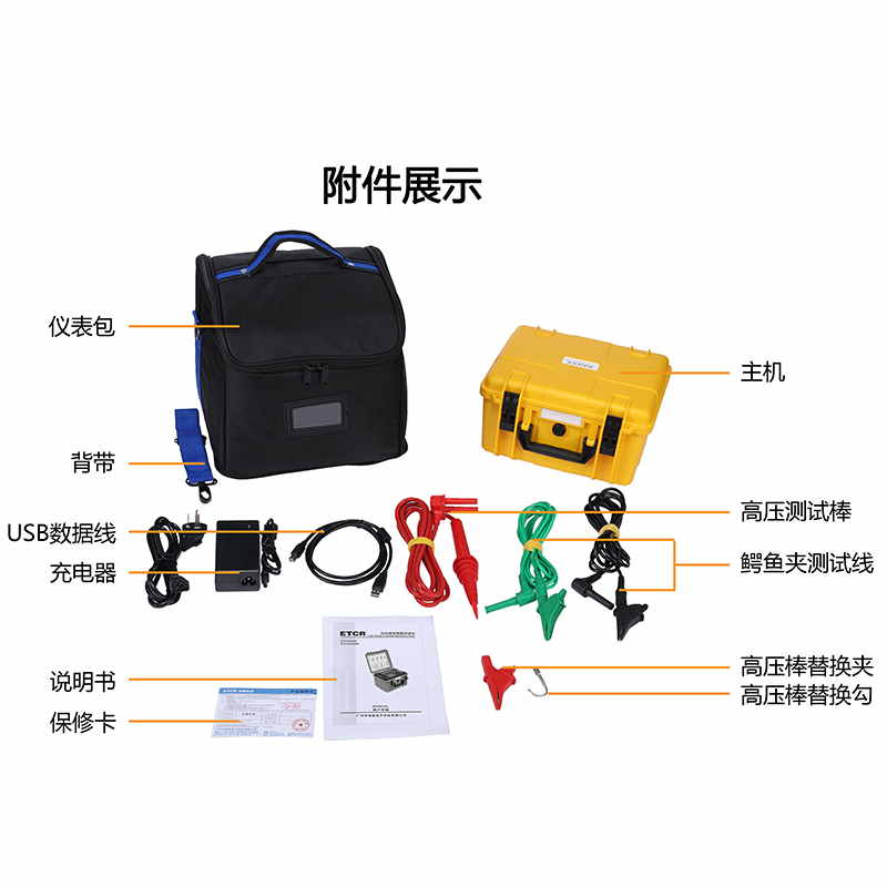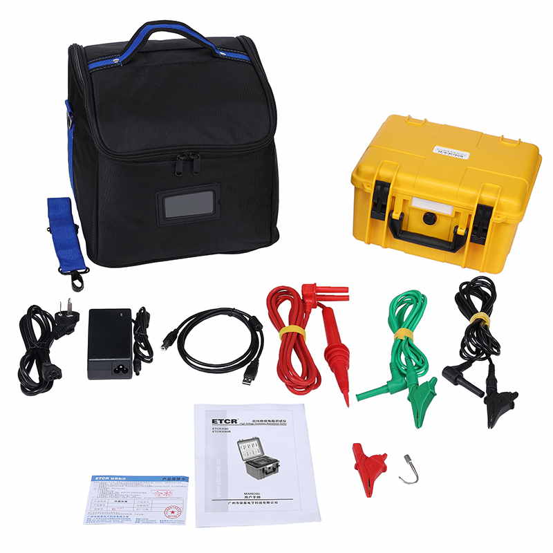 儀表的測試計時器自動記錄測試時間、存儲含有日期時間的測試結果,觸摸屏可以非常方便的查閱記錄的歷史數據,完全隔離的USB接口和藍牙通信可將測試數據安全的上傳到PC機或手機,供用戶進行數據分析。儀表配置帶有雙層絕緣及屏蔽層的測試線,高壓棒配有可更換的鱷魚夾及鉤子,可適應各種測試場所。儀表采用堅固的雙層外殼結構,儀表外箱防護等級IP65,能防止運輸存儲過程中水分灰塵的侵入及防止撞擊有效保護儀表。