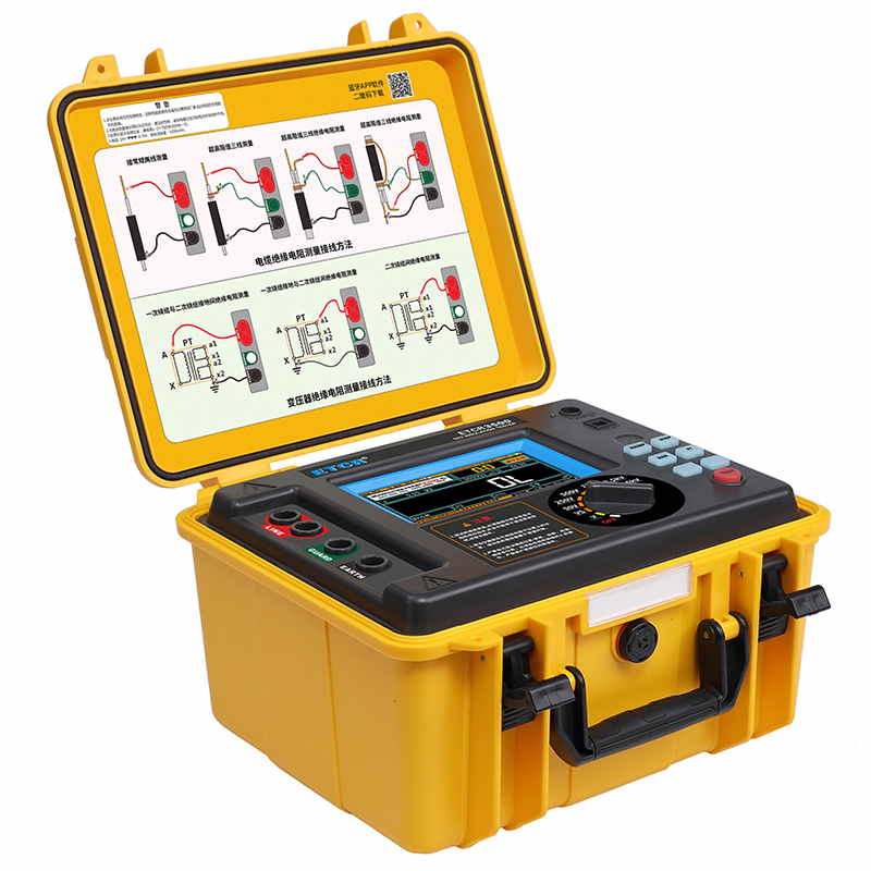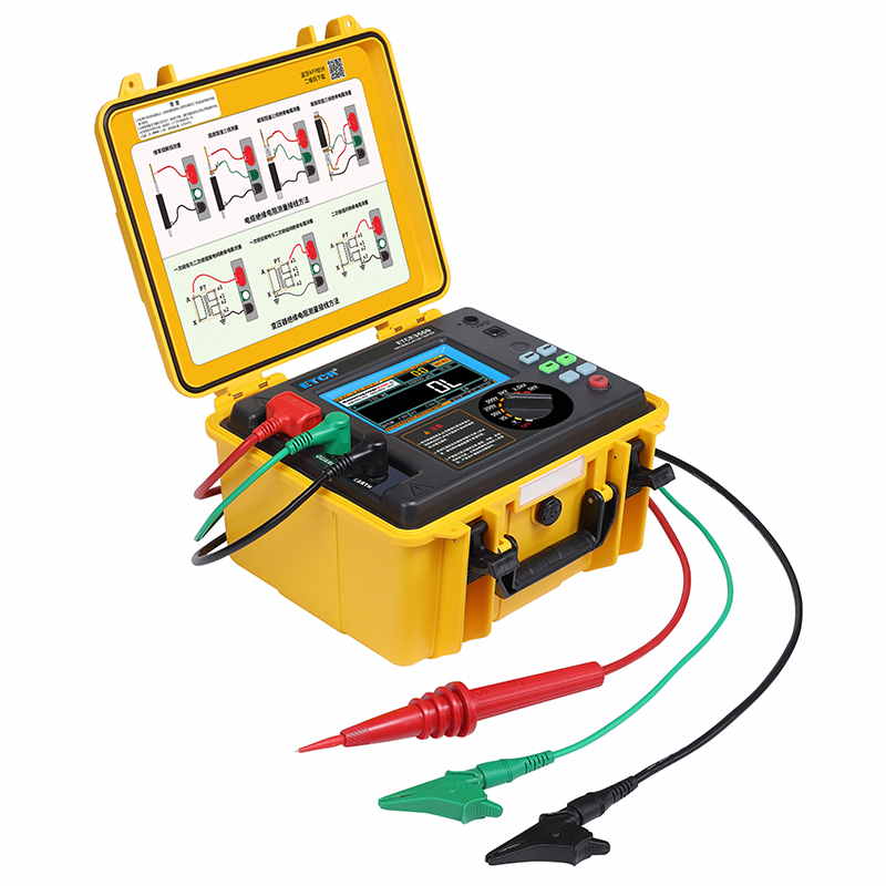 ETCR3500高壓絕緣電阻測試儀又稱高壓兆歐表、高壓絕緣電阻表,擁有完善的各種絕緣電阻指標測試功能、自設測試電壓功能、良好的抗干擾能力,在變電站等有強感應電環境下、以及在分布電容較大的使用場景下具有明顯優勢。儀表采用真彩觸摸屏,所有測試數據及電池電量同屏顯示一目了然,旋鈕開關和按鍵組合使得操作非常簡單。用戶無需費力記憶操作方法,點擊屏幕的“HELP”即可彈出操作方法,有效指引用戶操作儀表。產品適用于大容量、高壓、強感應電環境下電氣設備、輸電線路等大型設備的絕緣電阻測試。是電力、電信、氣象、機房、油田、機電安裝和維修以及工礦企業供電部門常用而必不可少的儀表。