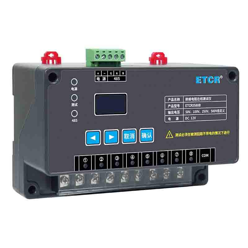 | ETCR3580B絕緣電阻在線監測儀 | 50V、100V、250V、500V (自定義) | 0.1MΩ~20GΩ | 2mA MAX | 1路~8路可選 | RS485、藍牙通訊 |