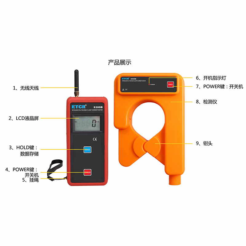 | ETCR9200B無線高低壓鉗形電流表 | Φ68mm | AC 0mA~1200A | 99組 | 30m |