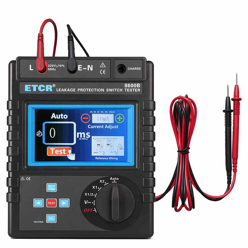| ETCR8600B漏電保護(hù)器測(cè)試儀 | 5mA~1000mA,十六檔 | 0ms~999ms | AC 0~600V | 觸摸彩屏 | 鋰電池 |