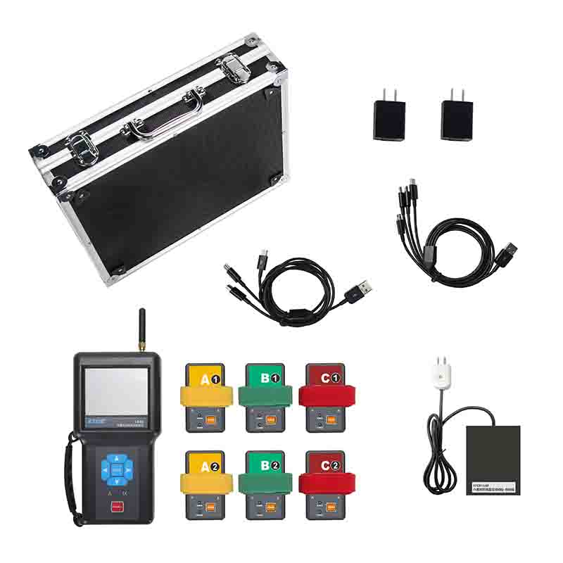 ETCR1540中置柜無線高壓核相儀由主機、探測器組、數據上傳軟件、USB通訊線等組成,主機采用3.5寸真彩液晶屏,可以同屏顯示相位、相序、核相結果及電壓等級,同時三相顯示清晰直觀。存儲功能,可存儲數據200組,USB通信接口,存儲數據上傳電腦可進行歷史數據讀取、查閱、保存、打印等。