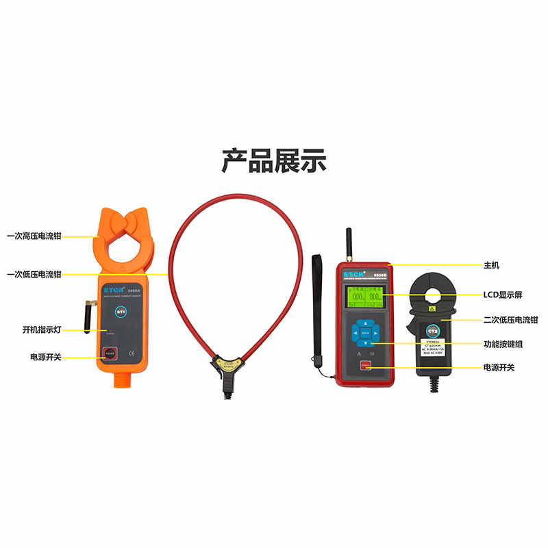 ETCR9550B無線高壓CT變比測試儀又稱互感器電流變比測試儀、互感器比差測試儀、電流互感器變比測試儀,用于35kV以下電流互感器的一次電流、二次電流大小、變比、角差,相別、極性判斷。廣泛應用于變電站﹑發電廠﹑電力稽查部門、工礦企業以及檢測站﹑電工維修部門進行電流檢測、反竊電及野外電工作業等。